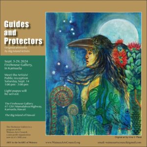 The Waimea Arts Council is honored to present Guides and Protectors, an exhibition and sale that explores the universal themes of guidance and protection. The exhibiting artists' works delve into cultural heritage, personal experiences, and imaginative realms by creating original artwork that resonate with these fundamental human experiences. Whether drawn from personal experience or spiritual ... Read more