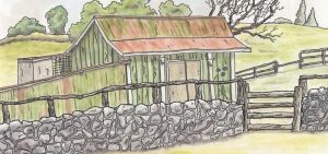 During the month of February, Chris Kutler will display several of her quirky pen and wash illustrations, which depict well known places around the island. Chris enjoys traveling around the island and drawing the scenes that she visits in ink. She then applies three layers of ink washes, each increasing in value, to highlight the shadows and give depth of field. Next comes the watercolor washes using combinations of the primary colors. Her last step is to use a fine ink pen to provide hash marks for texture.
