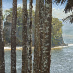 Michael’s art medium choices span Oils, Charcoal and Pastels. “My work is mostly limited to landscape and still life. Nothing too deep in my purpose or intentions other than to create pleasing images. My free time is spent playing (and working on) my guitars , and standup paddling – or rather standup falling at Wailea Bay, Kawaihae, and the Hilo Bayfront.” Note that his art incorporates custom made frames that he has created that are works of art in and of themselves and add significant value to each of his creations.